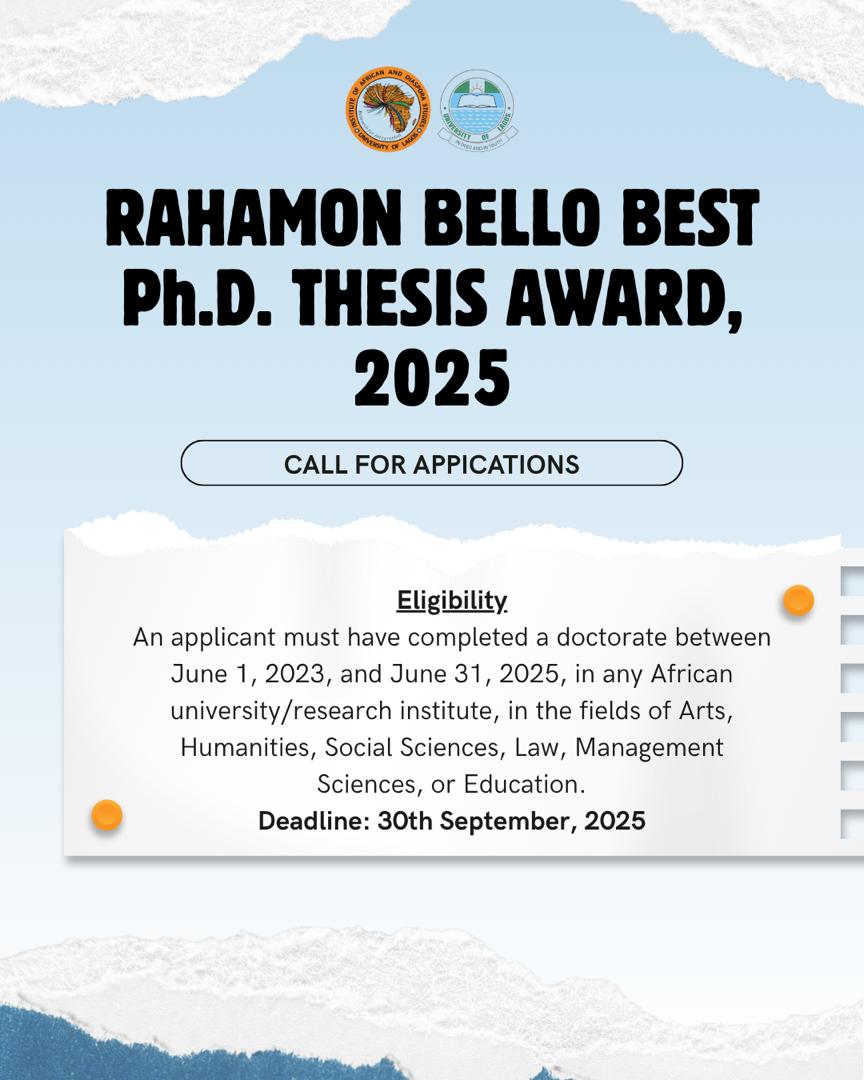 THE WINNER OF RAHAMON BELLO AWARD FOR THE BEST Ph.D. THESIS IN AFRICAN AND DIASPORA STUDIES 2025