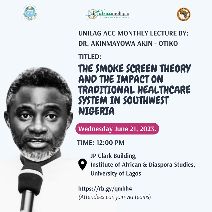 Dr. Akinmayowa Akin-Otiko, a Senior Research Fellow at the Institute of African and Diaspora Studies will deliver a lecture entitled “The Smoke Screen Theory And the Impact on Traditional Healthcare System in Southwest Nigeria” on Wednesday, June 21, 2023 at 12 noon. Click here to join the lecture