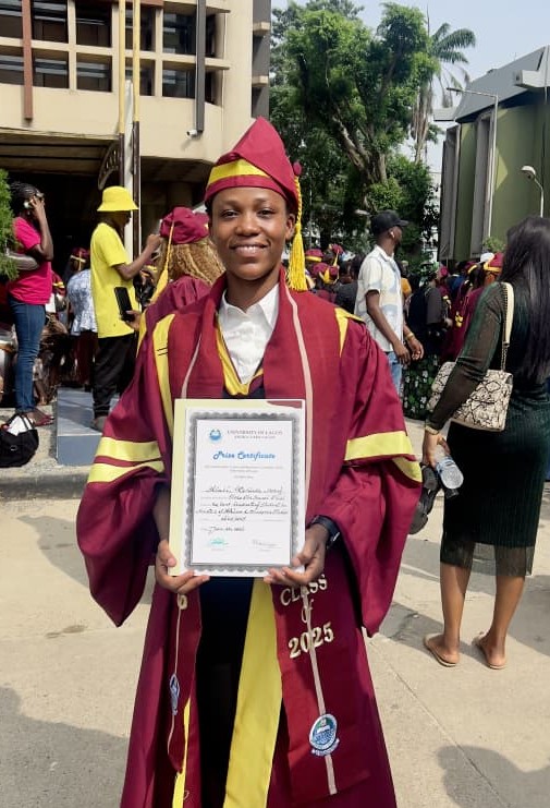 As the Best Graduating Student in Masters of African and Diaspora Studies, she won the “Eleko Oba Sanusi Olusi prize” of Two hundred and fifty thousand naira (250,000.00).